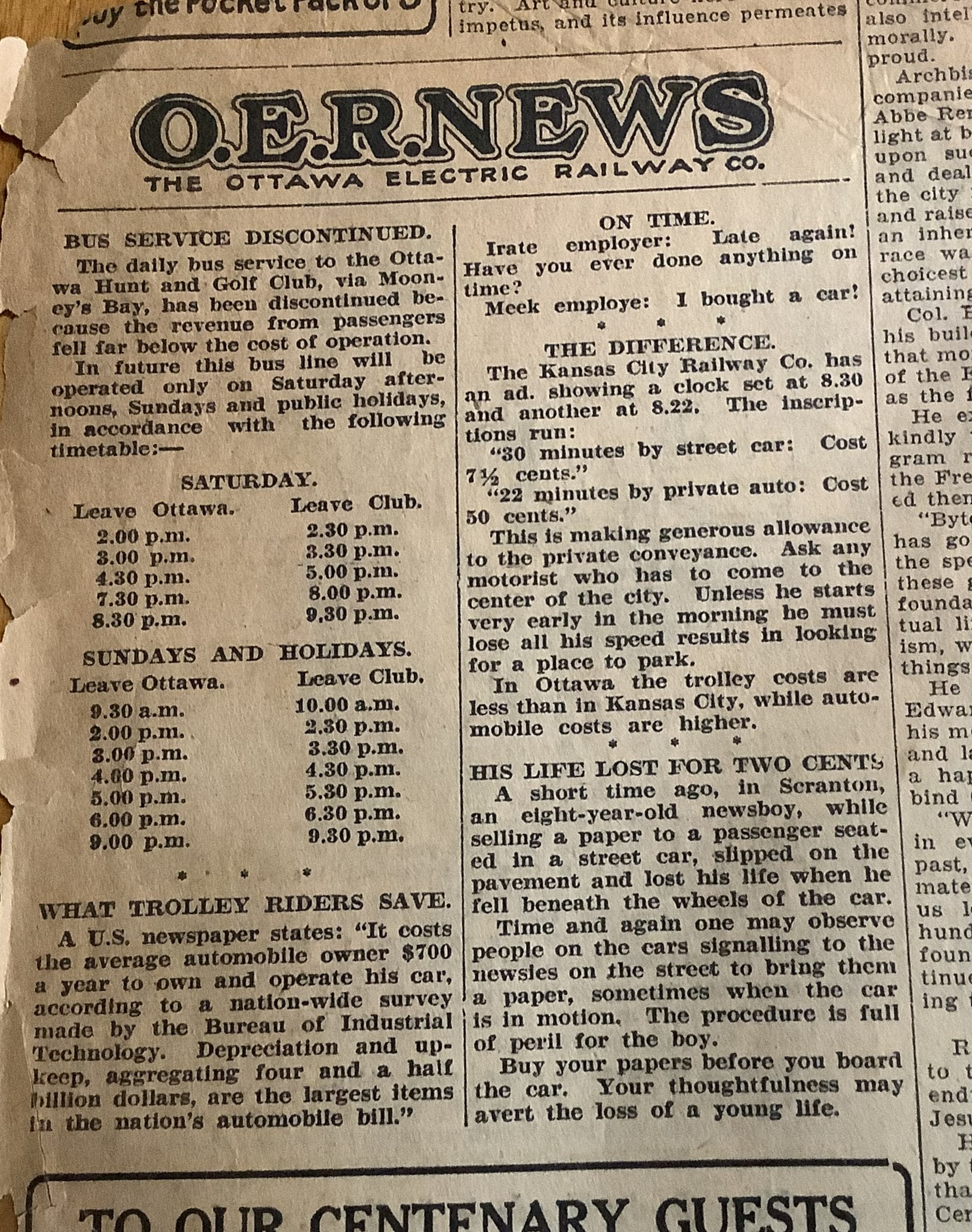 “O.E.R. (OTTAWA ELECTRIC RAILWAY) NEWS”