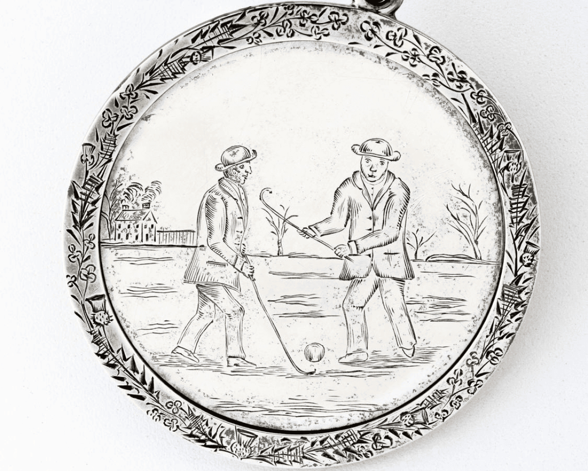 Mackay never forgot the game of his youth, and encouraged his friends and mill workers to take time out for winter play on the frozen Rideau River. On Christmas Day, 1852, Mackay, then age 60, hosted an ice shintie match between the New Edinburgh Scots against the Bytown Sassenachs (Englishmen). The Scots won 2-1 and the Laird of Rideau Hall awarded the Shintie Club winners this silver medal, now in the Bytown Museum in Ottawa.