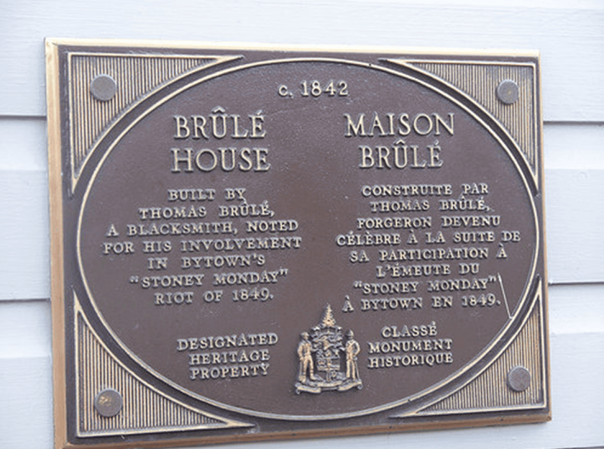 Figure 3: Plaque on Brûlé house 288-290 St. Patrick Street, Ottawa. Photo credit: Sonja McKay