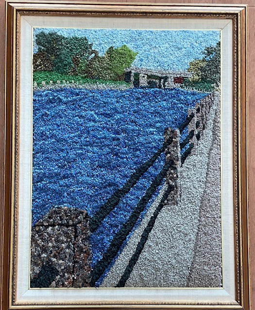 The rug hooking group took their name from the building where they first held regular meetings. It took an estimated 250+ hours of effort by 24 volunteers to plan and complete the rug in 2020. Nora Lee organized its design and construction, and Pat Bonn did most of the design. The story of the making of this rug was published in Rug Hooking Magazine in 2024.