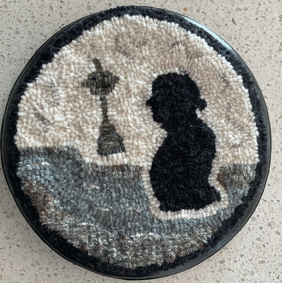 Designed and hooked by Lara Wellman in 2023. Wellman was inspired to create this piece as a symbol representing her city.